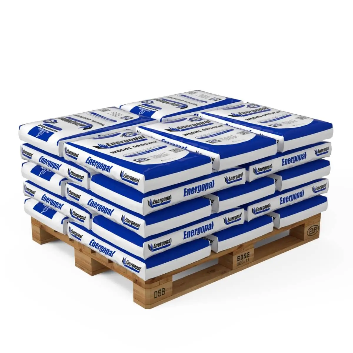 Energopal to workowany węgiel groszek oferowany w jednostce sprzedaży 1 paleta 1000 kg. Produkt przygotowany w workach 20 kg ułatwia przechowywanie i codzienną obsługę opału.